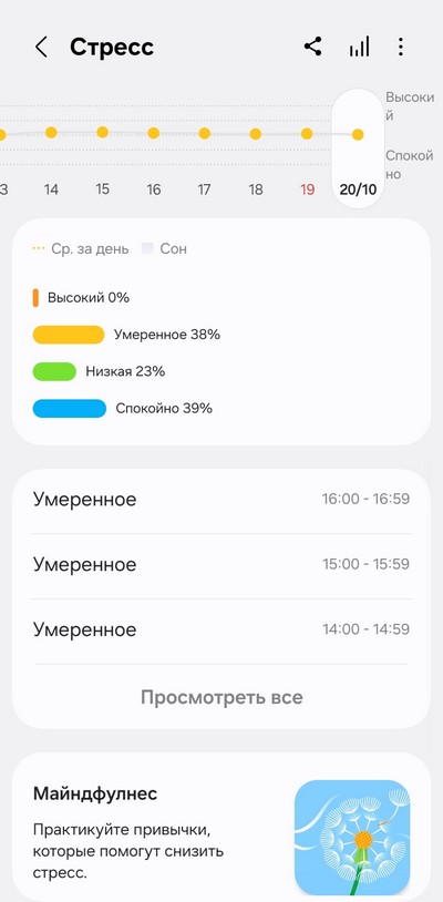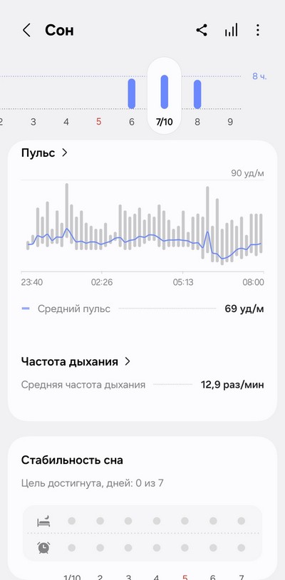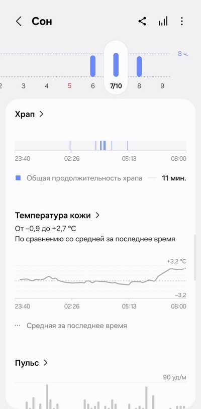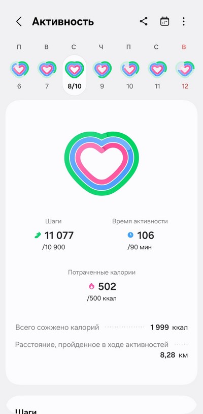 Ну и теперь давайте посмотрим, как собранные данные выглядят в приложении Samsung Health.