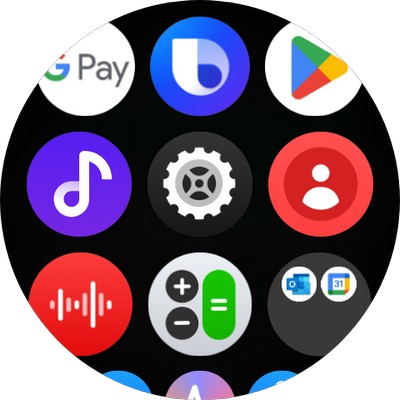 О настройке оплаты с часов. Приложение оплаты (вы сами выбираете, что будете использовать по умолчанию - Samsung Wallet, Google Pay или другую какую-то систему бесконтактных платежей) запускается длинным нажатием кнопки "возврат". Если приложение Samsung Wallet не настроено, то оно для настройки запустится в смартфоне.