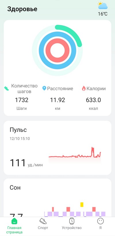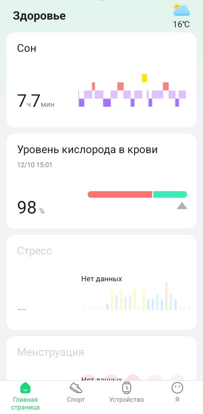 Мониторинг: сон, физическая активность, тренировки, сердечный ритм, оксигенация крови