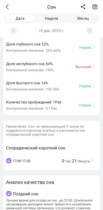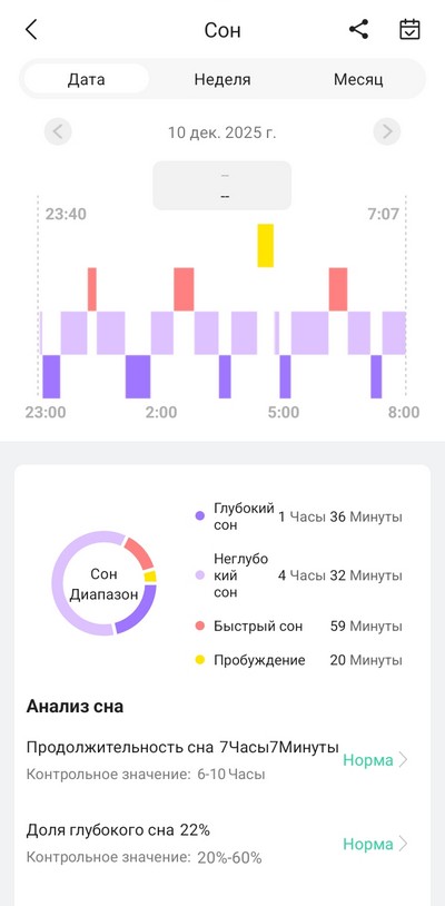 Мониторинг сна делался хорошо. Просыпания/засыпания отслеживали нормально.