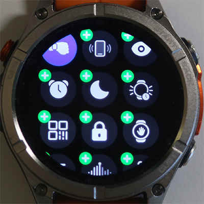 Свайп от циферблата вниз - область быстрых переключателей.