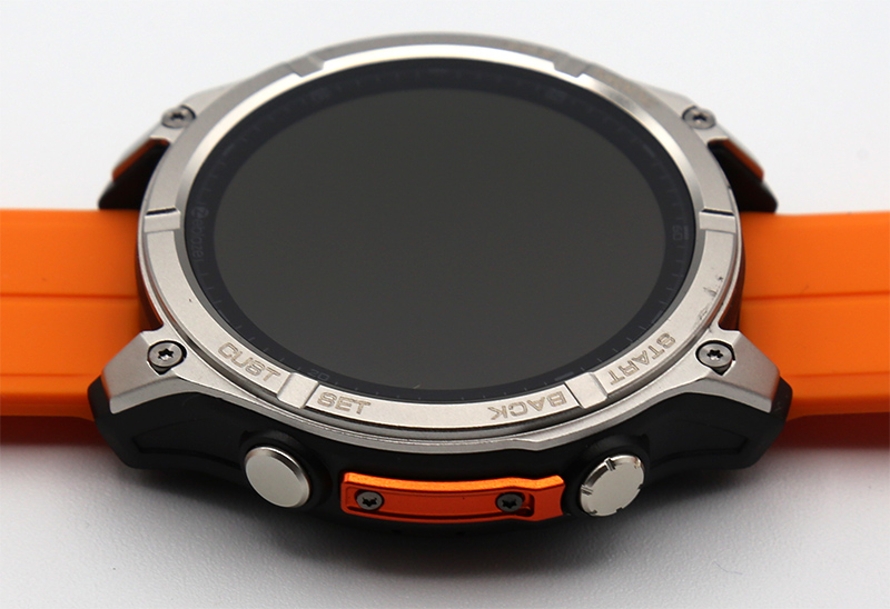 Корпус часов выполнен из прочного пластика, дополненного металлической рамкой из нержавеющей стали вокруг дисплея.