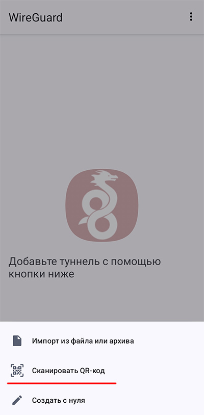 На смартфоне загружаете приложение WireGuard, доступный для iOS и Android, в нем нажимаете кнопку "Добавить туннель", там выбираете отсканировать QR-код - и сканируете код конфигурации из вашей страницы сервиса.