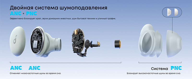 Модель Soundcore Sleep A30 - самая продвинутая из всех, у нее кроме всего прочего есть активный шумодав, но она и самая дорогая - в ЕС стоит порядка 230-250 евро.