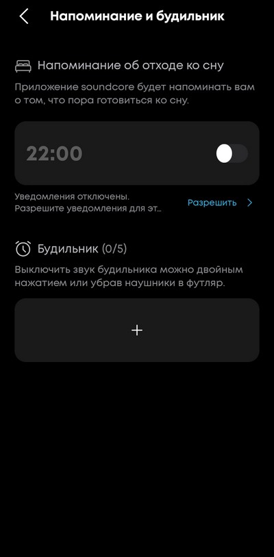 Можно включить напоминание об отходе ко сну, также здесь есть будильники - аж пять штук.