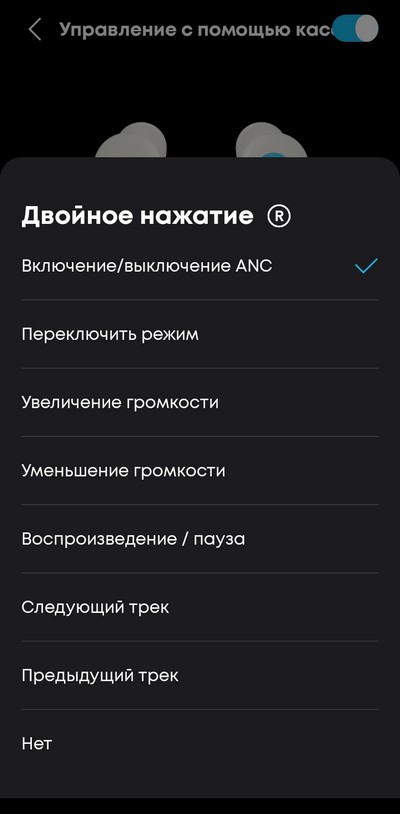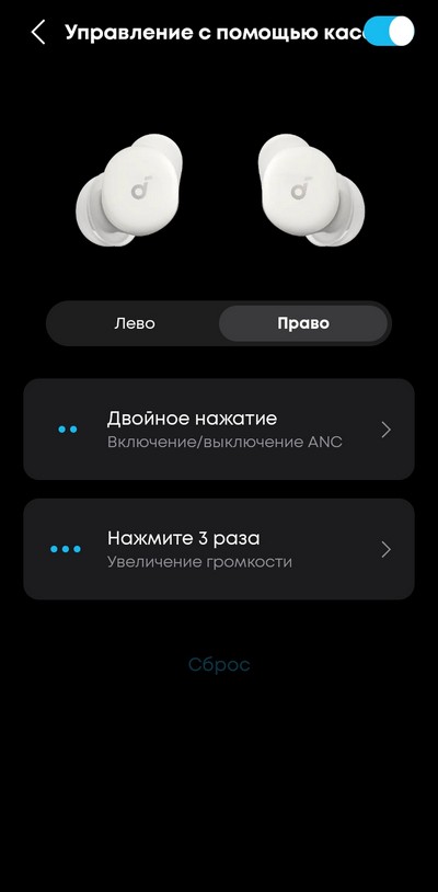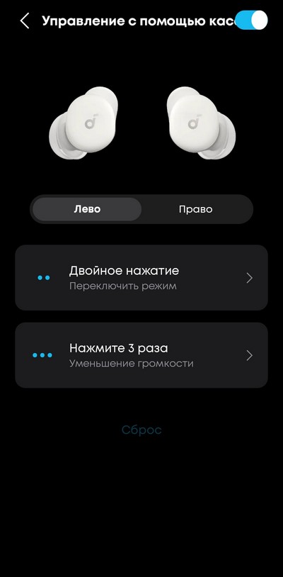 Настройка управления на левом и правом наушнике.