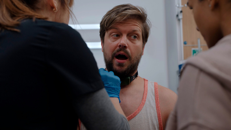 Также классный получился интерн доктор Деннис Уитэкер, которого сыграл британский актер Герран Хауэлл. Я как раз его недавно видел в хорошем сериале "Людвиг", где он сыграл молодого сотрудника полиции, которого все шпыняют, а здесь он играет интерна, которого вроде как тоже все шпыняют, но он, хотя и несколько неуклюжий и попадает во всякие неприятные ситуации, тоже хороший специалист, и с ним там есть несколько прямо-таки трогательных сцен.