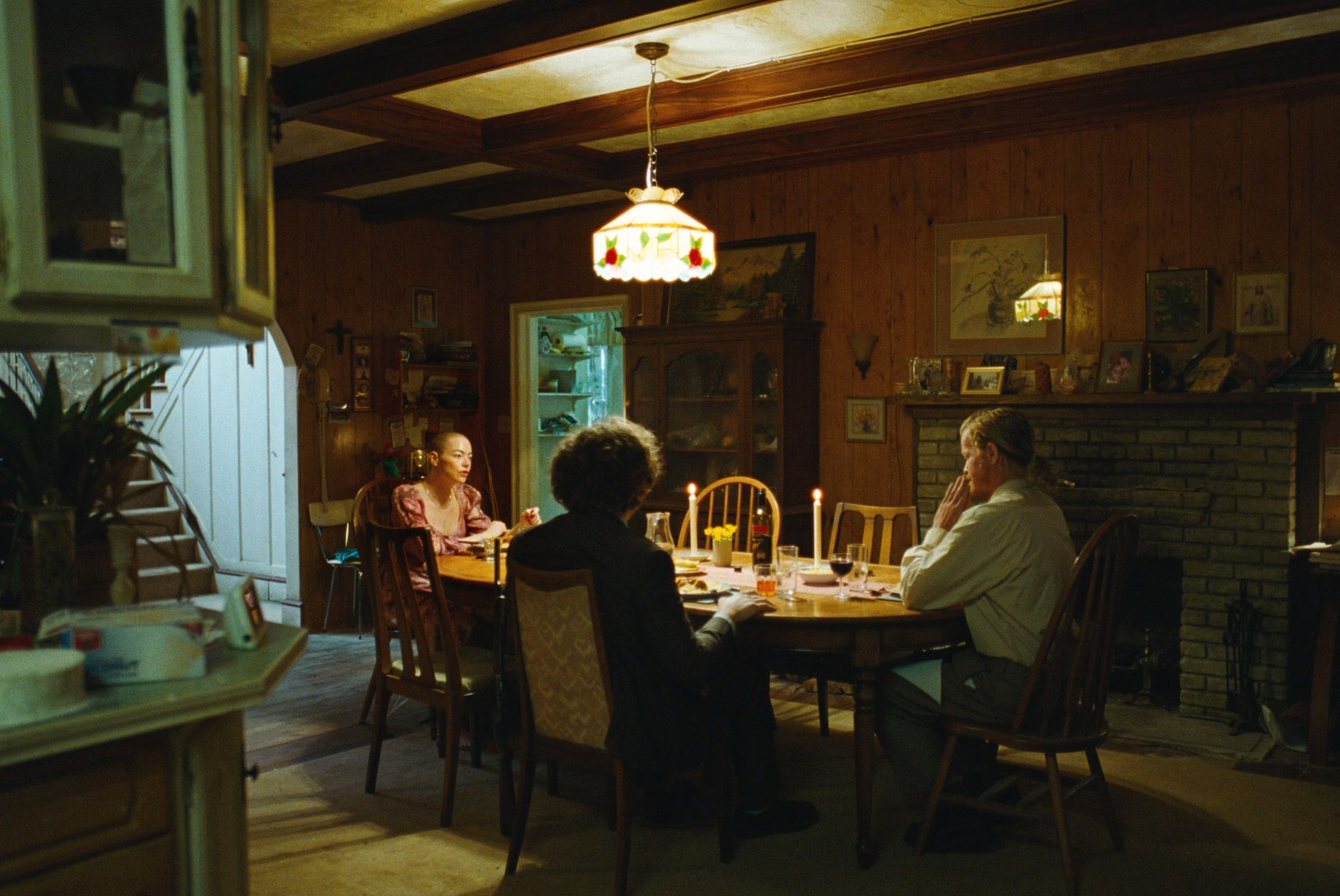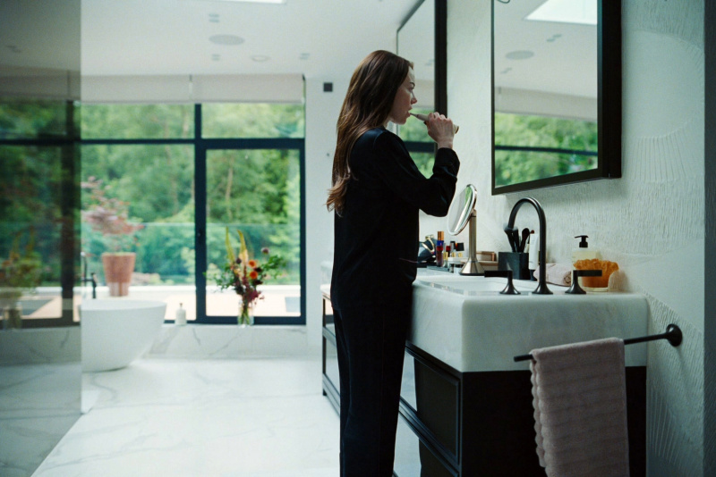 Несмотря на то, что в основном действие происходит в подвале дома Тедди, наблюдать за тем, как Мишель пытается обыграть Тедди, а тот фанатично следует своему плану - очень интересно. Лантимос любит использовать всякие сверхширокоугольные объективы вплоть до "рыбьего глаза", и если в "Фаворитке" меня настойчивость применения таких объективов раздражала, то здесь наоборот - это не только уместно, но и смотрится прямо-таки здорово.