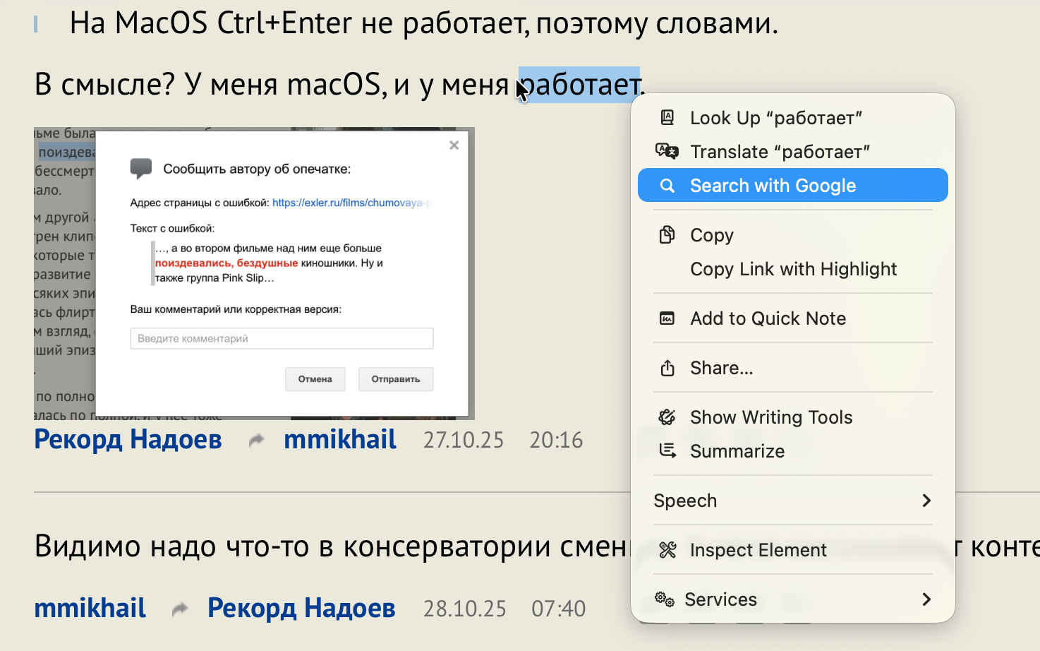 На MacOS Ctrl+Enter не работает, поэтому словами.