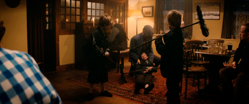 И так примерно весь фильм. Богатый антураж, забавные языковые хохмы (кокни и язык высшего общества), приличные гэги в абсурдистском стиле - не такие легкие и изящные, как у великих, иногда это выглядело туповато, но было видно, что старались, - и это все перемежается достаточно отвратным пердильно-генитальным юморком, который здесь, на мой взгляд, смотрится довольно дико.