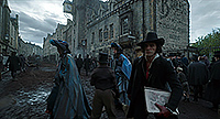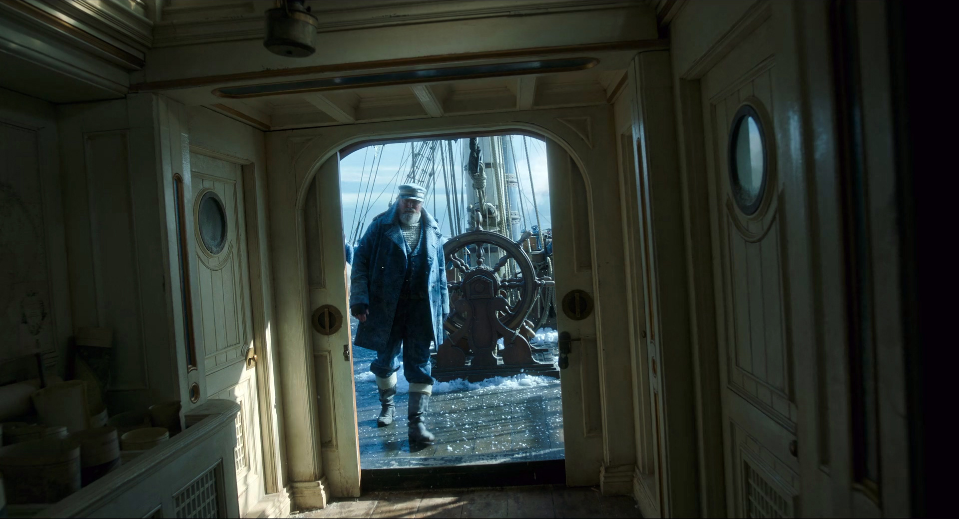 Визуально это все сделано очень здорово - Гильермо дель Торо умеет это как никто другой. При съемке он практически не использовал зеленые задники и компьютерную графику, все декорации возводились по старинке, это хорошо видно и производит большое впечатление. Там даже корабль, на котором происходит не так много действия, построили в натуральную величину, а уж башня-лаборатория Франкенштейна - это фактически визуальный шедевр.