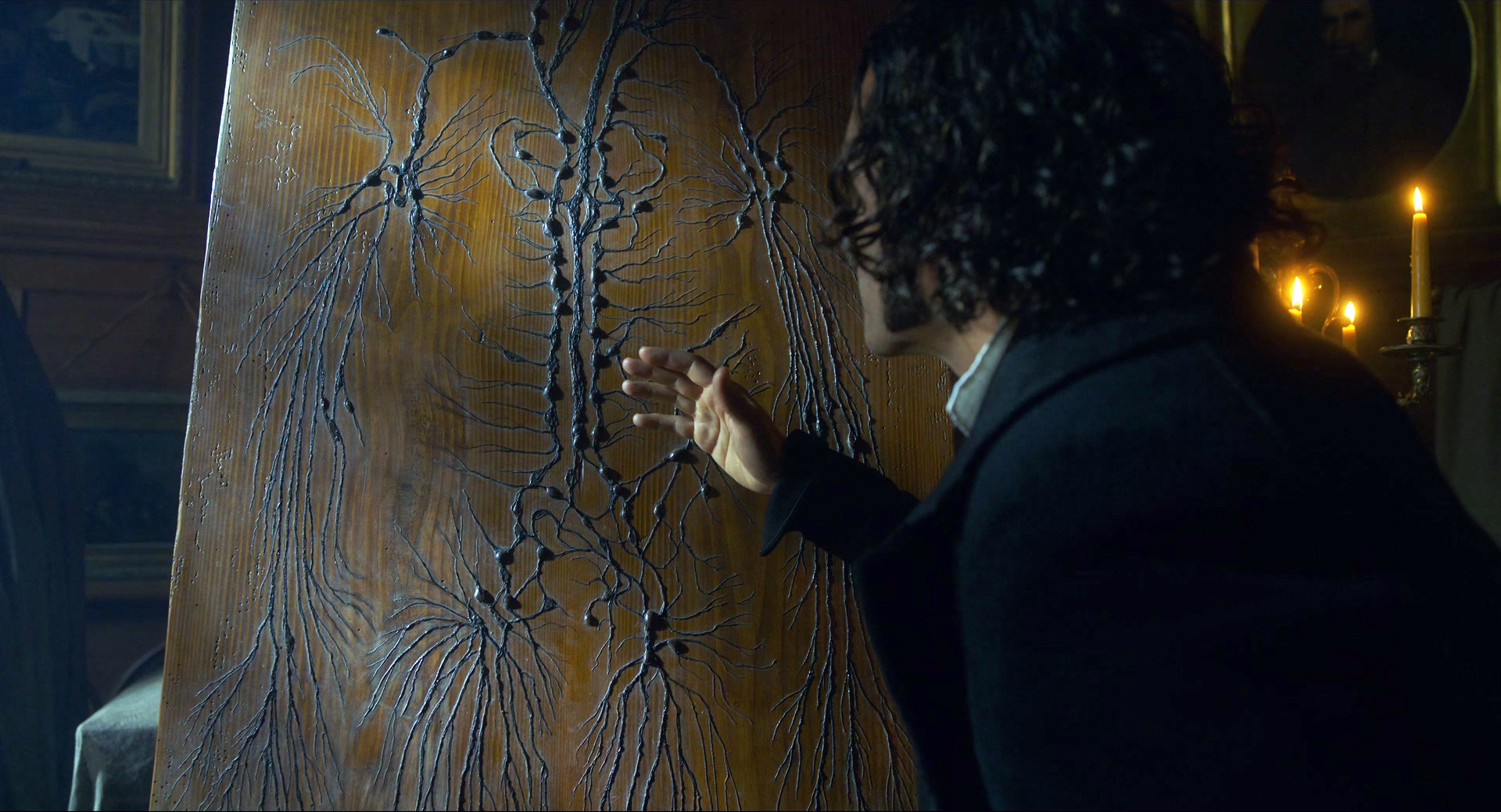 У Кристофа Вальца тут достаточно небольшая роль этого оружейного промышленника, который спонсирует эксперименты Франкенштейна в своих собственных интересах. В книге, насколько я помню, этого персонажа нет вообще, но здесь и действие из конца XVII - начала XIX века перенесено в начало XX века, Первую мировую: видимо, режиссеру было важно показать, что Существо создано именно из тел солдат, павших на поле битвы - эдакая коллективная военная травма. Из этого, видимо, и возник производитель оружия, который страшно разбогател на военных поставках.