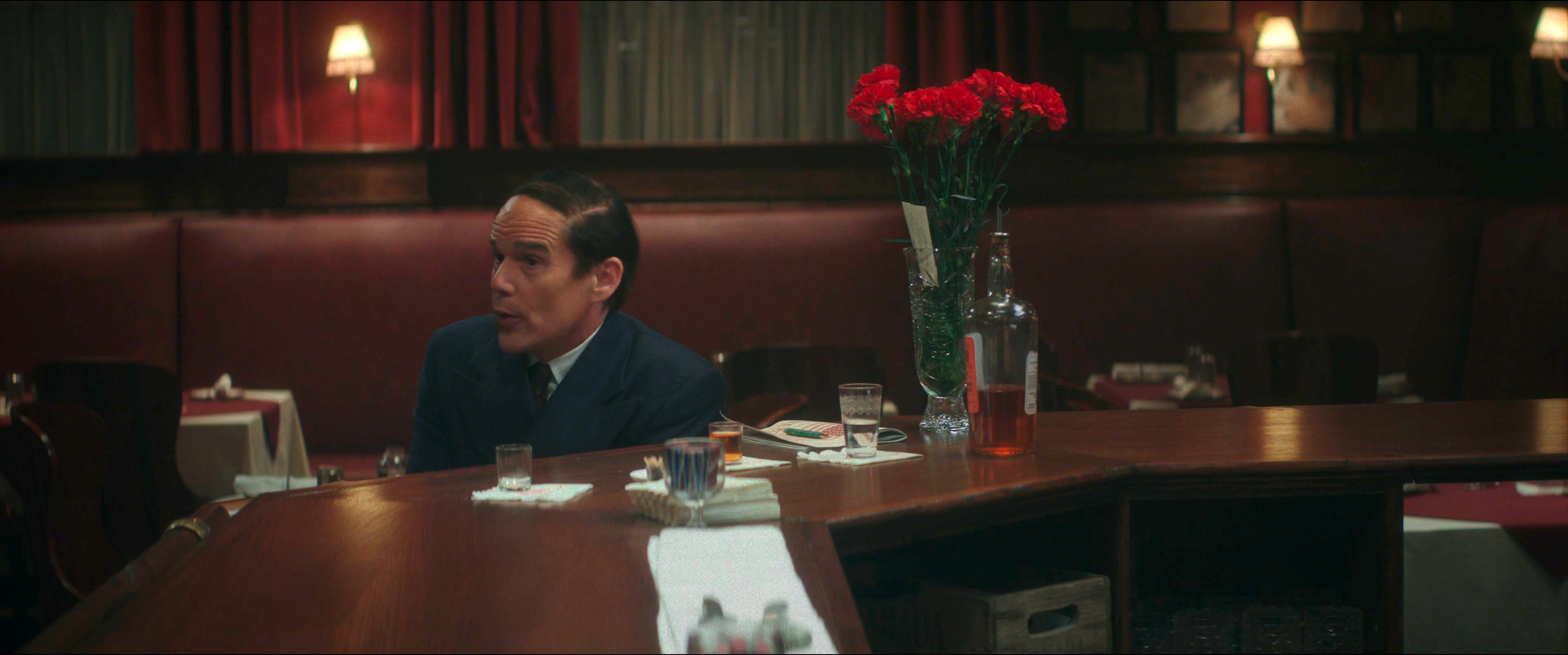 В «Голубой луне» Линклейтер предлагает увидеть портрет автора бродвейских мюзиклов, либреттиста Лоренца Харта (Итан Хоук), написавшего совместно с композитором Ричардом Роджерсом мюзикл «Оклахома!», после премьеры которого, в ресторане разворачивается действие фильма.