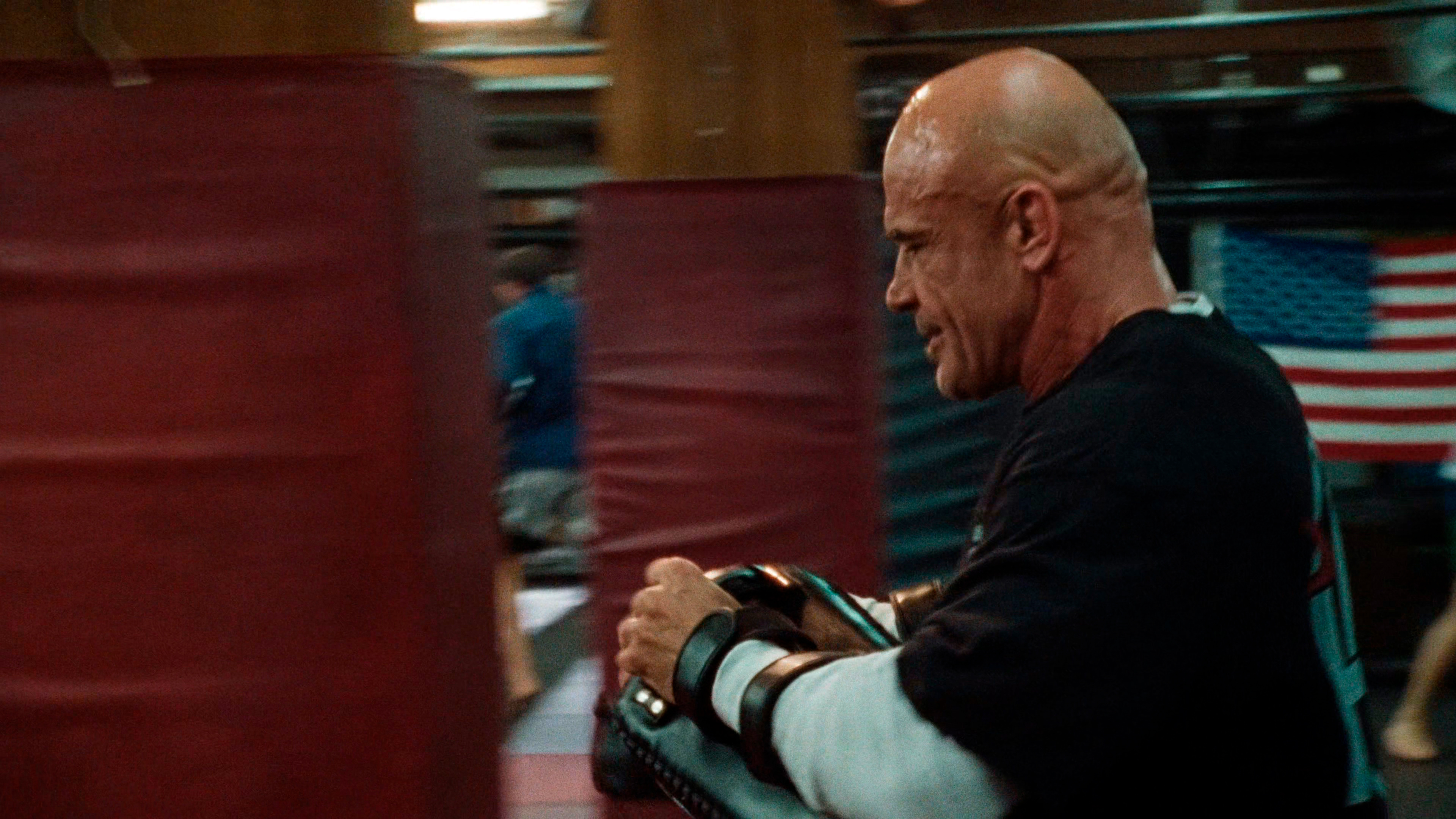 Марк Керр помогает Дуэйну Джонсону готовиться к роли. (В реальности Джонсон всего на четыре года младше Керра, а в фильме играет его тридцатилетнего, но мы не будем к этому придираться, не в этом дело.)
