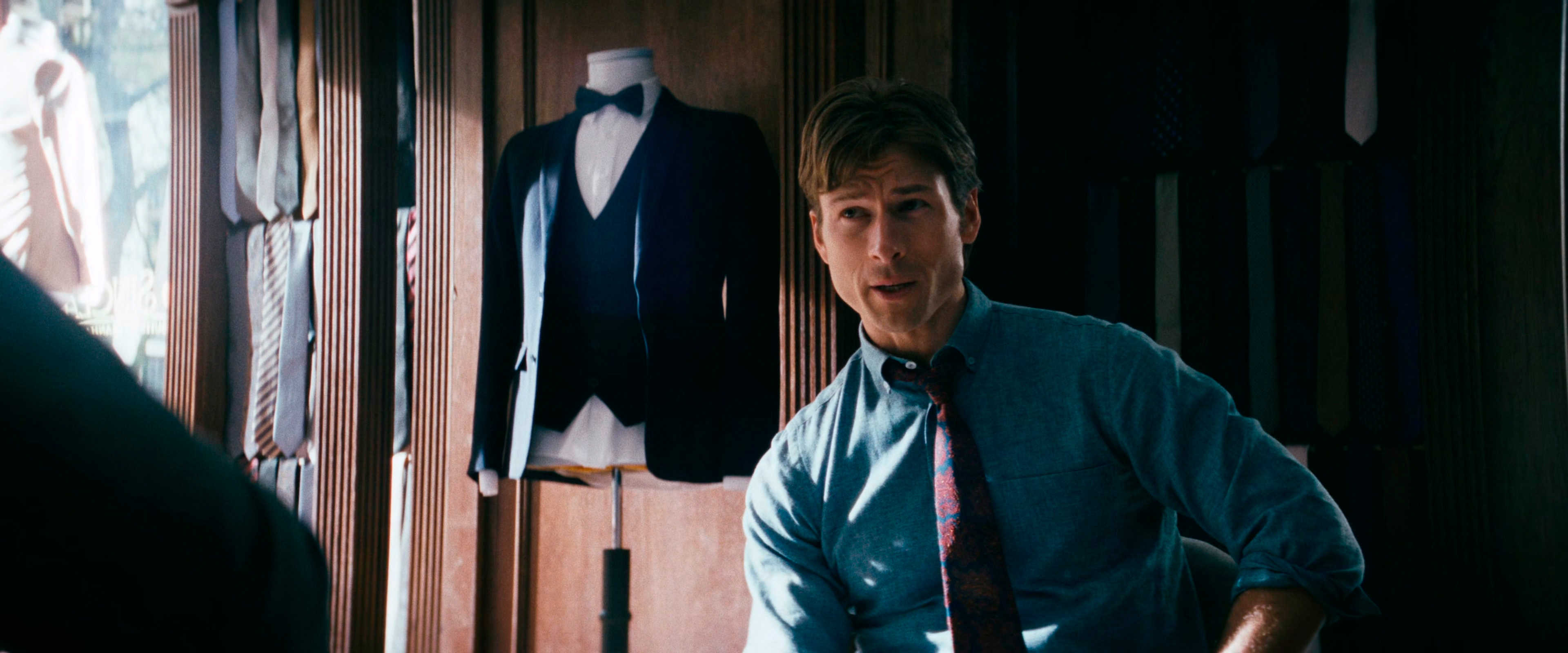 Гленн Пауэлл - актер неплохой, харизматичный и обаятельный, но несколько, скажем честно, однообразный. В "Я не киллер" у него был очень похожий типаж, а вот в недавнем "Бегущем человеке", где он должен был изображать персонажа, находящегося в постоянной неукротимой ярости, это смотрелось достаточно искусственно. Но улыбчивый и обаятельный киллер в этом фильме - оно тоже как-то не производило заметного впечатления - возможно, из-за выбранного тона постановки, который явно несколько странный.