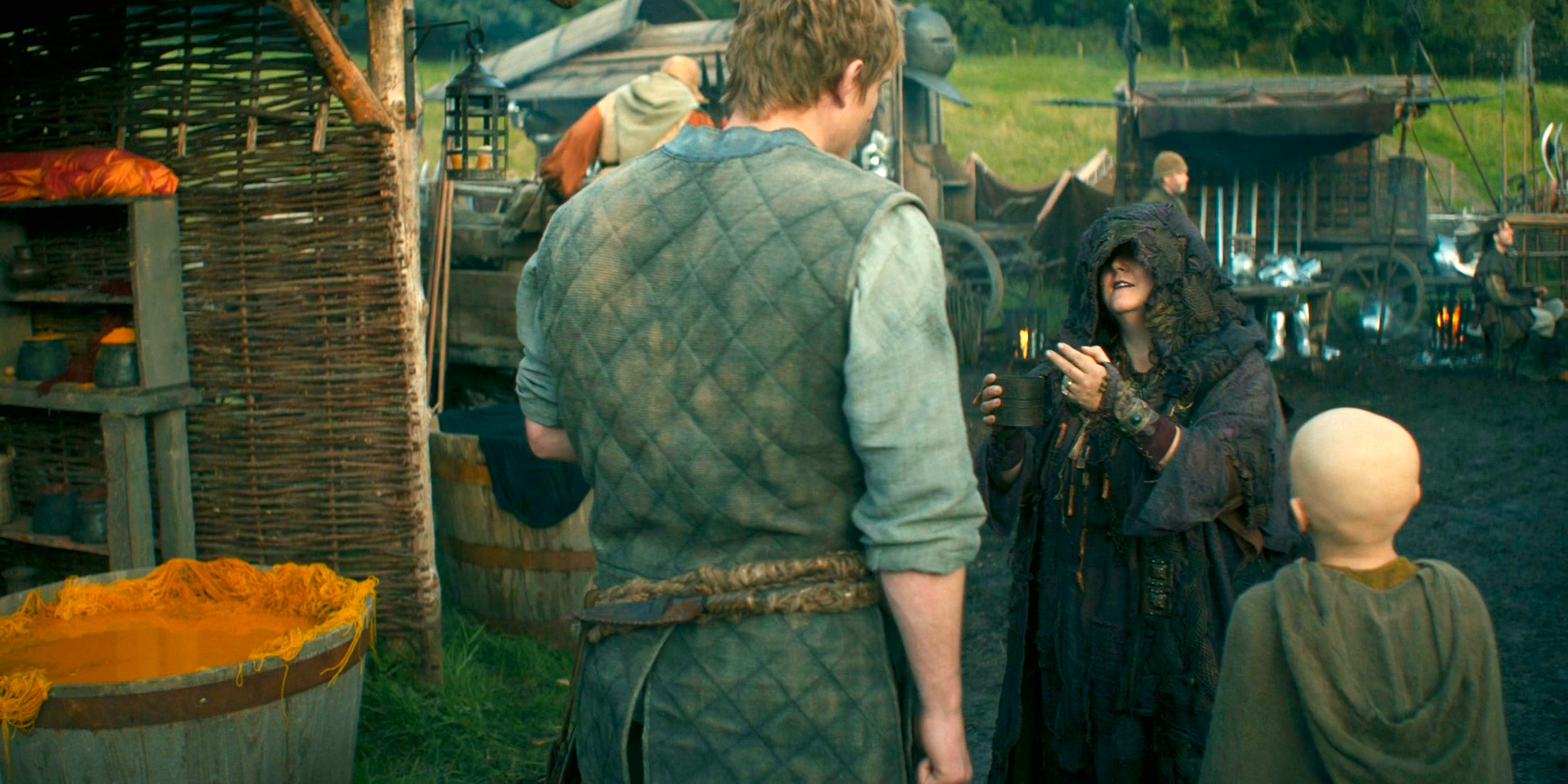 Почему я написал, что это не "Игра престолов"? Да по всему: по эпичности, по масштабу, по отсутствию большого количества действующих персонажей. Это вполне такая локальная - пока, по крайней мере, - история, где только один главный герой, его спутник и несколько персонажей второго плана. Весь первый сезон - история о том, как Дунк явился в Эшфорд, выдал себя за рыцаря, а потом огреб серьезнейших неприятностей, ввязавшись в конфликт с принцем.