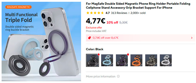 Любопытный магнитный держатель-подставка для смартфонов с MagSafe. Позволяет по-разному ориентировать смартфон в горизонтальной или вертикальной плоскости, также с его помощью можно закреплять смартфон на вертикальной магнитной поверхности.