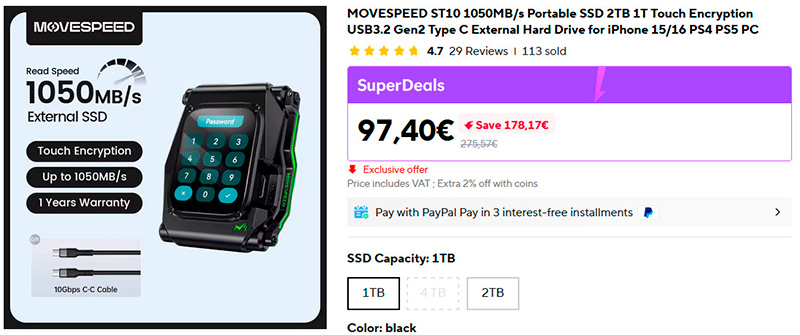 Цена терабайтной версии сравнима с ценой хорошего терабайтного SSD без корпуса и без шифрования.