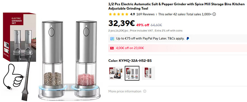 Набор из двух электрических мельничек с подставкой: для перца горошком, крупной соли и других специй. Батареек не требуют, заряжаются от USB.