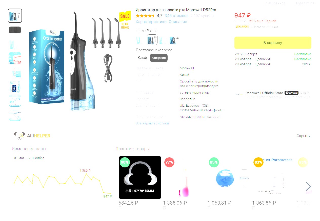 Ирригатор для полости рта Mornwell D52Pro за 968 руб. на AliExpress.