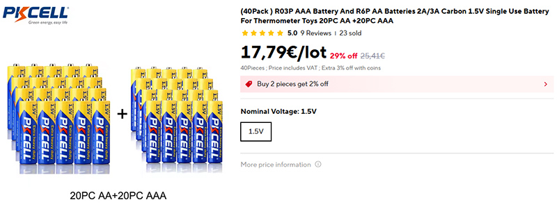 Вот у них набор из 40 солевых батареек - 20 AA и 20 AAA.