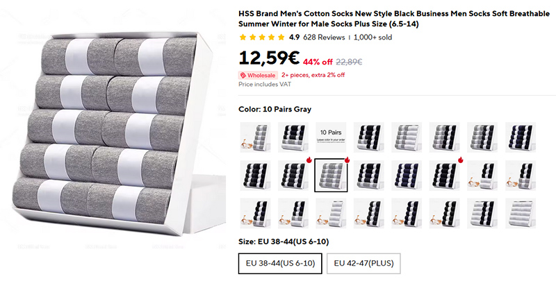 Вы спросите, почему я их заказываю на Aliexpress? Так я в наших краях такие не могу найти. Точно такие - с совсем коротким горлышком, мне такие не нравятся. А нормальные - или толстые, или с каким-то рисунком. Просто обычные серые - нет таких. Так что я на Ali их и покупаю уже лет восемь: носки из бамбуковой ткани или хлопчатобумажные.