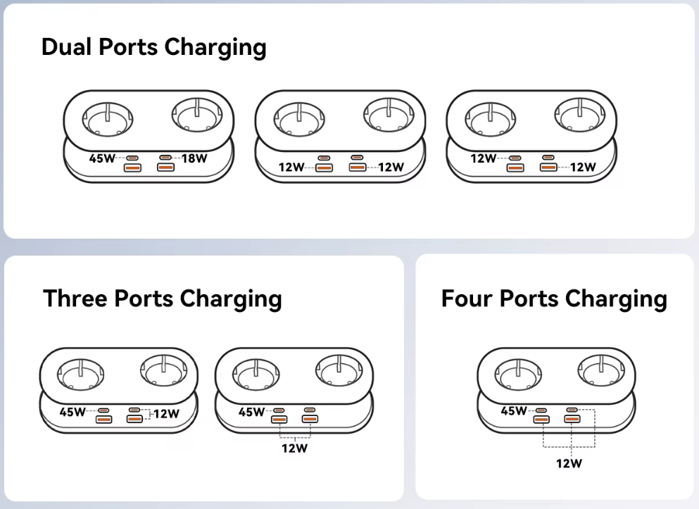 - 2 "обычных" USB-A (максимум 18 Вт);