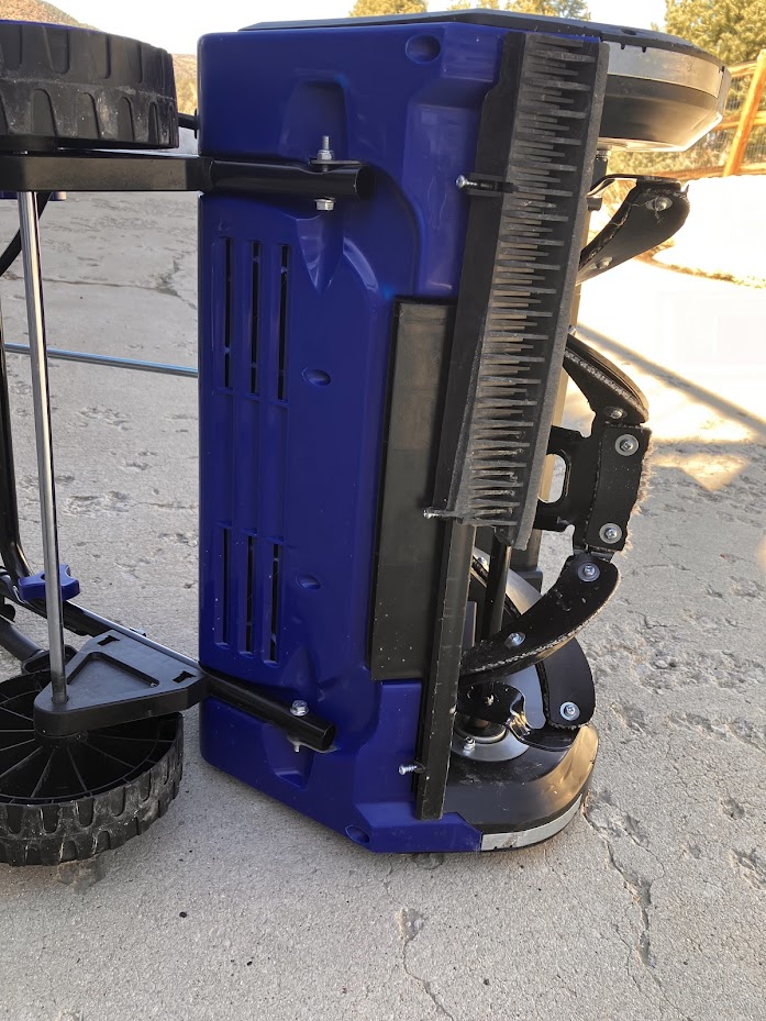 Что мы и наблюдаем на фотках - сломалось вот этот latch (извините не знаю как на русском) который прикрывает снизу. Запасные фирма не производит и поддержка на емыл не отвечает (телефон поддержки у них вообще убрали с сайта). Если latch убрать целиком, 60% снега оно выталкивает сзади на ботинки.