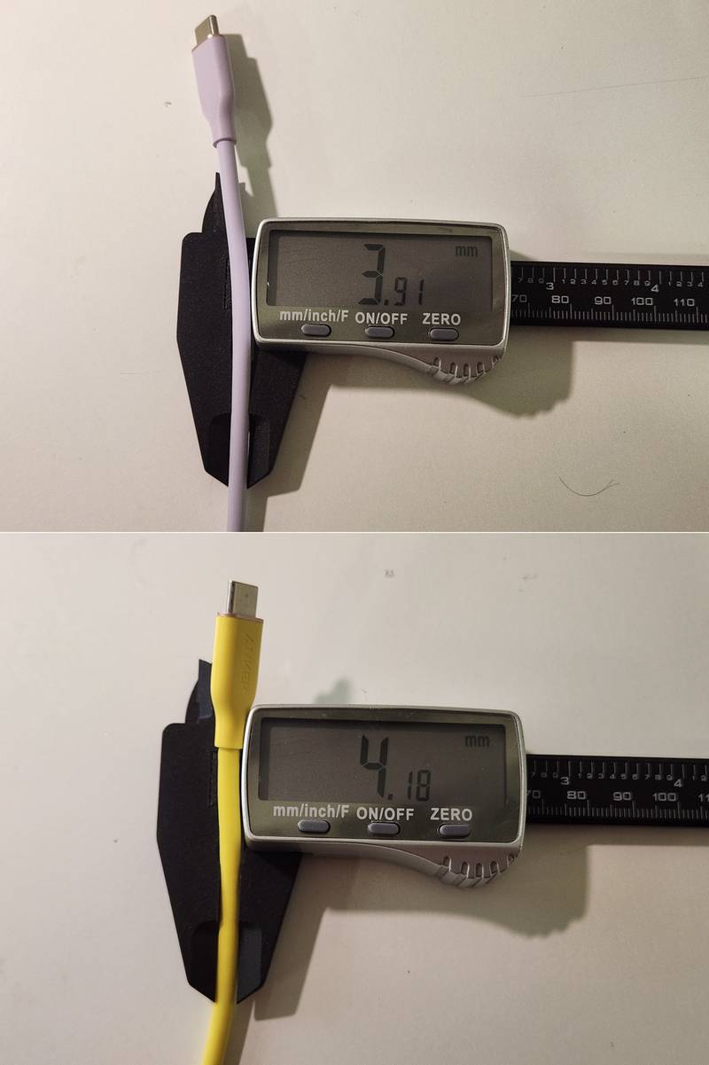 У меня шнуры USB Type-C, рассчитанные на много ватт, толще стандартных USB Type-C 2.0, которые идут в комплекте с айфонами, например.