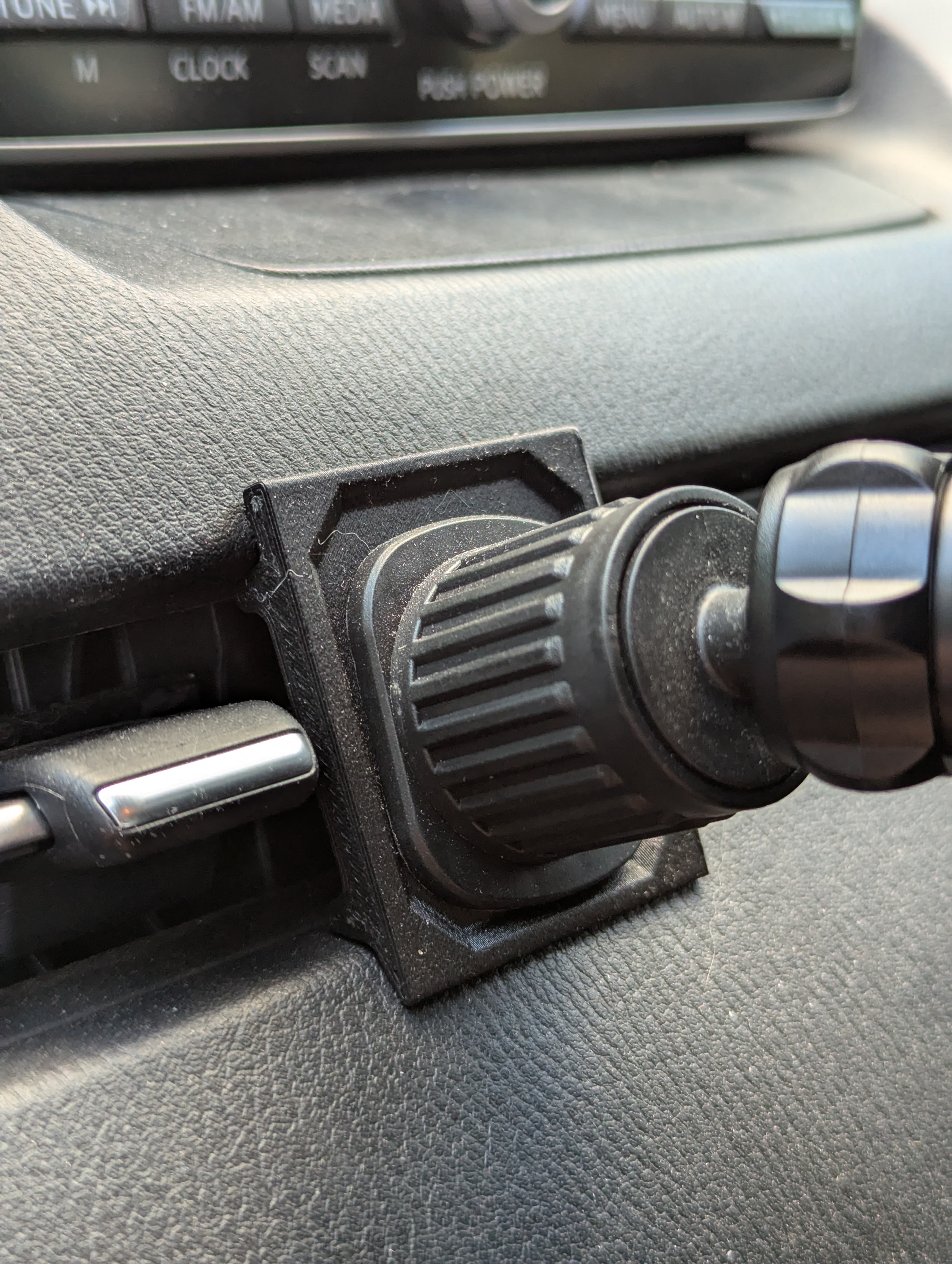 Кроме того, после установки держателя, воздушный поток не регулируется ни по вертикали ни по горизонтали (при прикручивании держателя воздух можно направить только полностью вниз или полностью вверх). Ну и стрёмно, что оно на одном лепестке держится, как бы не выломало (не знаю как эти лепестки устроены в Mazda 2, но про какие я знаю -- там оно всё совсем не прочно и на вырывающие нагрузки особо не рассчитано).
