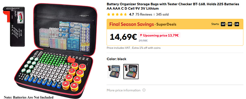 Если же вы предпочитаете органайзер в виде ящичка - то вот неплохой вариант, и там в комплект также входит тестер для батареек.