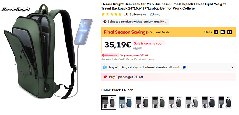 Очень компактные, при этом вместительные рюкзаки со встроенным портом для зарядки смартфона. Размеры - 14" и 17", различные цвета.
