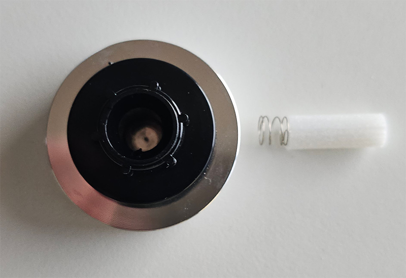 Нижняя крышка снимается, там виден серебристый контейнер.