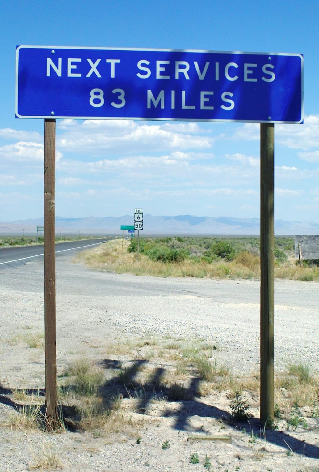 In 2002, Neil Peart, then taking a sabbatical from Rush, published Ghost Rider: Travels on the Healing Road, his account of a long-distance motorcycle journey across Canada and the United States. He traveled across US 50 in Nevada, and remarked on the complete absence of any development on long stretches of the road, including a sign reading "No Services for 88 Miles."