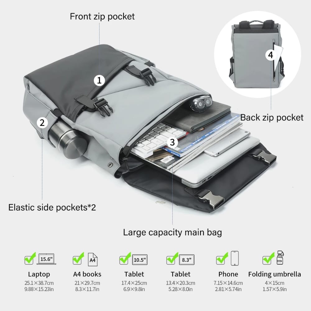 Тонкий и легкий рюкзачок, который в сложенном виде помещается в ладони. Размер рюкзака - 41х30х11 см, в сложенном виде - 12х7 см. В сложенном виде в сумке будет занимать совсем немного места, а как понадобится - развернуть и надеть на спину.