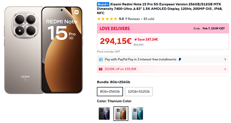 Хорошая цена на европейскую версию нового Xiaomi Redmi Note 15 Pro 5G (вот здесь мы обсуждали эту серию). На Амазоне эта модель - 350-450 евро.