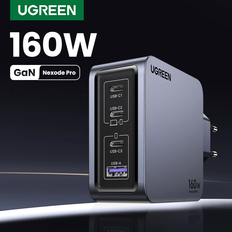 имеет три порта USB-C и один порт USB-A. Это дает возможность быстрой зарядки одновременно четырех устройств. Интеллектуальная система распределения тока обеспечивает эффективное управление мощностью до 160 Вт.