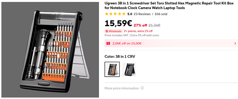 Домашнему мастеру - продвинутый набор прецизионных отверток UGREEN UT110 включает 38 бит для работы с мобильными телефонами, компьютерами, часами и камерами. Удобный кейс с магнитной крышкой обеспечивает хранение и легкий доступ к нужной бите. Эргономичная рукоятка позволяет точно контролировать усилие при тонком ремонте.