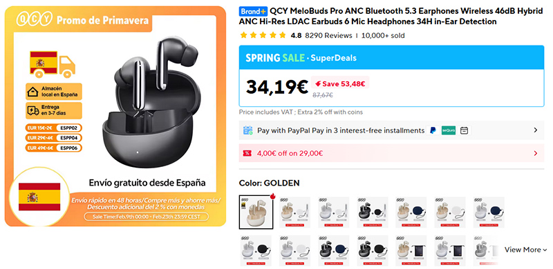 Недорогие, при этом очень продвинутые наушники QCY MeloBuds Pro. За 34 евро - поддержка кодека высокого разрешения LDAC, активный адаптивный шумодав с четырьмя режимами, включая режим прозрачности, обнаружение вытаскивания из уха, мультипоинт, 34 часа автономной работы с подзарядкой от кейса.