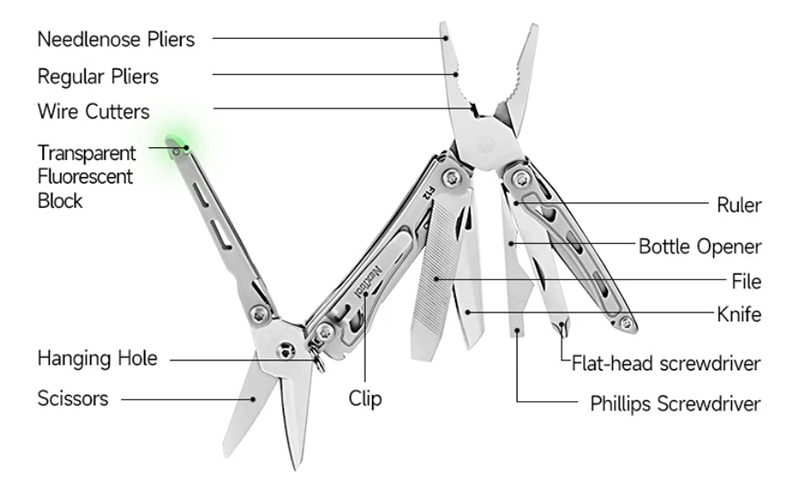 Новый мультитул от NexTool "13 в 1". Пассатижи, нож, ножницы, отвертки, открывалка, держатель и так далее.
