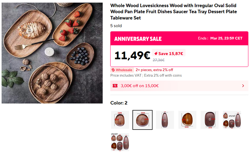 Неплохой выбор подносиков из натурального дерева для сервировки различных блюд. Есть и наборы из четырех и из пяти штук. У меня дома этих подносиков штук шесть, мы их используем для сервировки для гостей всяких колбас-хамонов, сыров и так далее, это и удобно, и смотрится красиво.