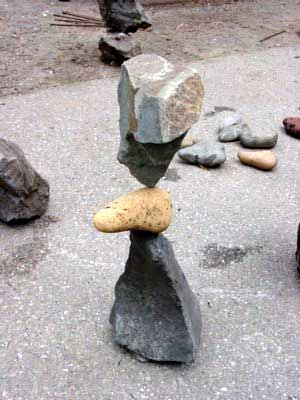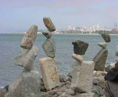 Любопытный сайт скульптора Билла Дэна, который увлекается созданием скульптур из балансирующих друг на друге камней. Он не использует никаких подручных средств, никакого клея и смолы. Камни стоят друг на друге исключительно из-за правильно подобранной точки приложений. Выглядит это примерно так:
