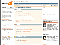 Сервис третий - "Живая газета ЖЖ". Еще один подход: контент этого блога блогов вообще собирается полностью автоматически из RSS-лент без участия редакторов и читателей на основе разработанных фильтров и правил. Впрочем, читатели могут сами рекомендовать новых авторов для каждого из разделов. Как следует из названия, в газету попадают только заметки из LiveJournal. Визуально это все выглядит именно как газета со статьями. Смотрится забавно, однако, на мой взгляд, читать такой формат в Интернете крайне неудобно. Если бы создатели проекта продублировали главную страницу в виде традиционной блоггерской ленты - это было бы очень кстати. Впрочем, конечно, для тех, кто умеет работать с RSS-агрегаторами, не составляет проблемы получить такую ленту самостоятельно из RSS-ленты проекта.