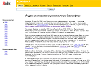 Кстати, о блогах... "Яндекс" исследовал русскоязычную блогосферу и выдал весьма интересные результаты. В сокращенном виде их можно найти здесь, в полном виде - здесь (документ PDF). Что интересного?