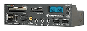 Какие забавные компьютерные штучки на свете бывают: пятидюймовое устройство для компьютера - двадцать в одном! Перечисляю: 2 24" SATA cables, 60" audio cable, 35" RCA cable, 2 38" fan power wires, 36" 2-port USB cable, 36" mic cable, 30" FireWire cable, slot cable & driver CD, flash media reader/writer accepts IBM Microdrive, SmartMedia, CompactFlash Type I & II, Secure Digital, Memory Stick/PRO & MultiMediaCard.