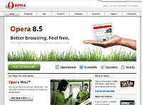 Из самостоятельных браузеров, не имеющих никакого отношения к движку IE, наиболее популярны Opera и FireFox. Opera - проект с достаточно солидной историей (этот браузер начали разрабатывать в 1994 году). Главное в Opera - скорость загрузки страниц. По сравнению с MSIE Opera выглядит как реактивный самолет рядом с транспортником. Кроме того, браузер Opera одним из первых стал поддерживать многостраничный режим работы, при котором в одном окне программы можно открыть практически сколько угодно веб-страниц. (Что интересно, MSIE этого не умеет делать до сих пор.) Из остальных "вкусностей" Opera можно перечислить следующие: специальная многофункциональная навигационная панель, весьма гибкий режим настройки программы под предпочтения пользователей, возможность варьирования вида любого просматриваемого сайта (вплоть до текстового режима), ведение заметок по каждой странице, специальные меры безопасности, встроенная поддержка электронной почты и IRC-каналов, ну и другие "вкусности" и полезности.
