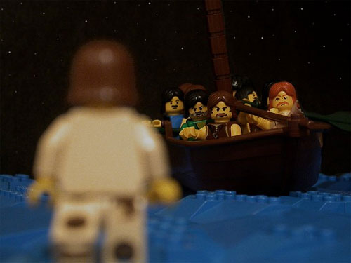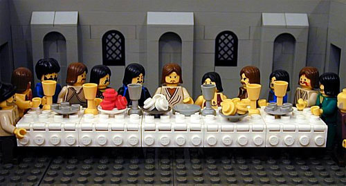 Иллюстрированная Библия в виде конструктора Lego (правда, с серьезнейшим образом доработанными фигурками). Кстати, безо всякого кощунства, просто иллюстративный материал. Вот, например, Иисус, идущий по воде: