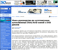 Полезная статья на 3DNews - "Мини-руководство по изготовлению качественных DivX/XviD-копий с DVD-дисков". Сейчас эта тема весьма актуальна не только для продвинутых пользователей, которые готовы сутками возиться с мудреными программами, чтобы перегнать один формат в другой, заодно что-то там подправив, подредактировав и настроив, но и для самых обычных владельцев компьютеров, перед которыми встают банальные задачи: посмотреть DVD на обычном приводе CD-ROM или, наоборот, перегнать фильм, вытянутый из районной сети, на DVD.