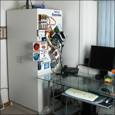 На девятом месте - компьютер-паук, живущий на стенке шкафа.