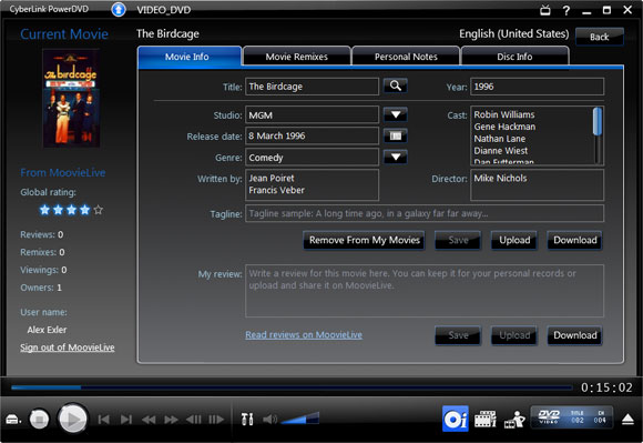 В-третьих, появилась возможность прямо в плеере составлять свои киноколлекции - плеер при этом может скачивать информацию о фильме из Интернета по его названию (для этого нужно стать пользователем сервиса MoovieLive).